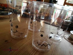 Wenn’s mal wieder mehr Besucher sind, als erwartet, kann man die dazugehörigen Gläser einfach mit einer (entsprechenden) Fratze versehen. Nun braucht sich der Glasbesitzer nur noch seine persönliche Fratze merken.