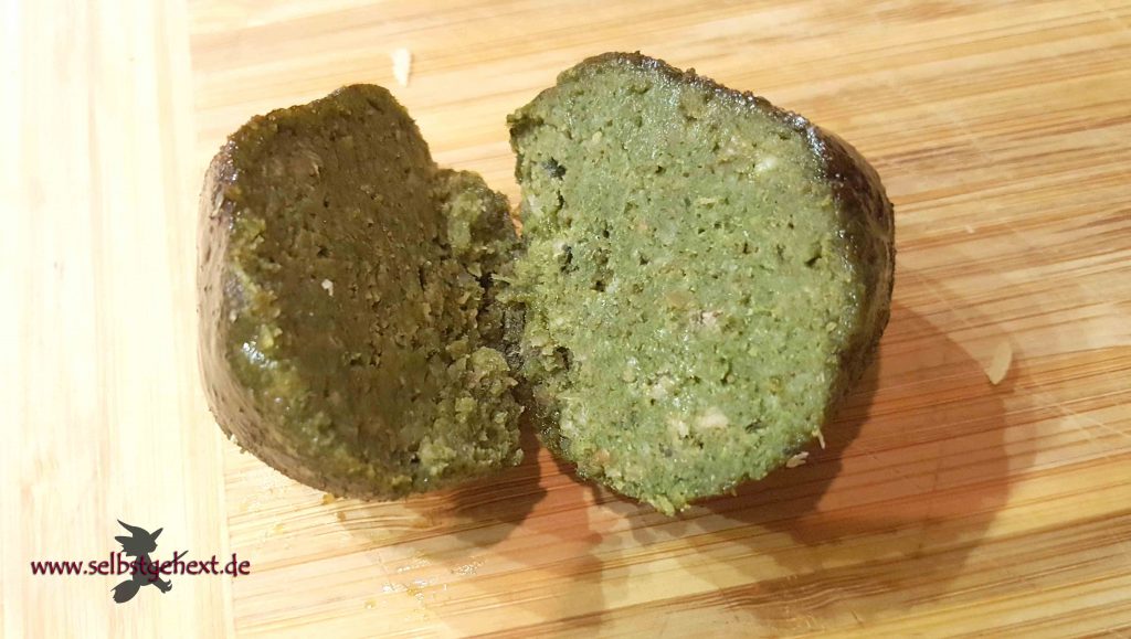 Ganz einfach: gekochte und abgekühlte festkochende Kartoffeln mit fein zerhacktem oder püriertem Rucola vermengen. Ein Ei dazu geben und mit Salz und Pfeffer abschmecken.