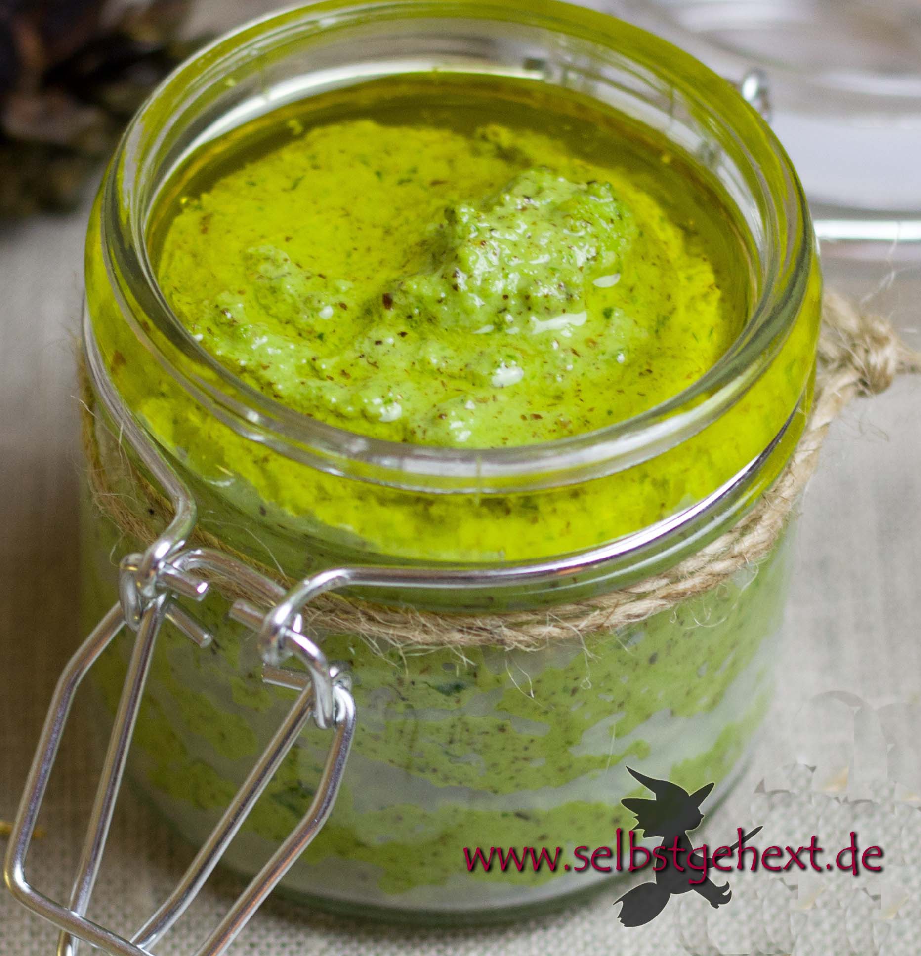 Grob gehackte Gemüseteile mit dem Salz fein pürieren. In Gläser füllen und mit Pflanzenöl großzügig bedecken.