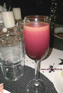 Glas mit Crushed Ice füllen, bis es voll ist. Drei Viertel des Glases mit Orangen-, Ananas- oder Mangosaft füllen. Anschließend Granatapfel- oder Himbeer-Sirup seitlich einfließen lassen, sodass er sich am Boden absetzt. Etwas Gewürzmischung darübergeben.