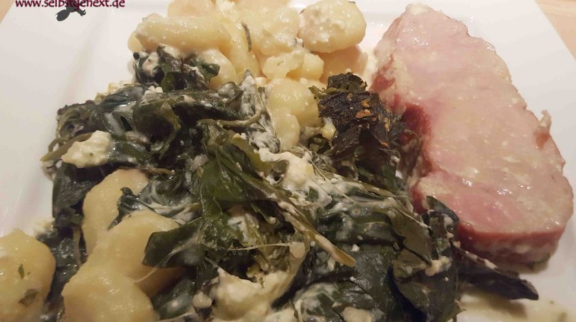 Was koche ich heute? Baumspinat-Gnocchi an Kassler!