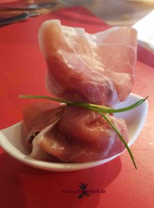 - mindestens vier Scheiben geräucherten Schinken (z.B. Serrano oder Bresaola)