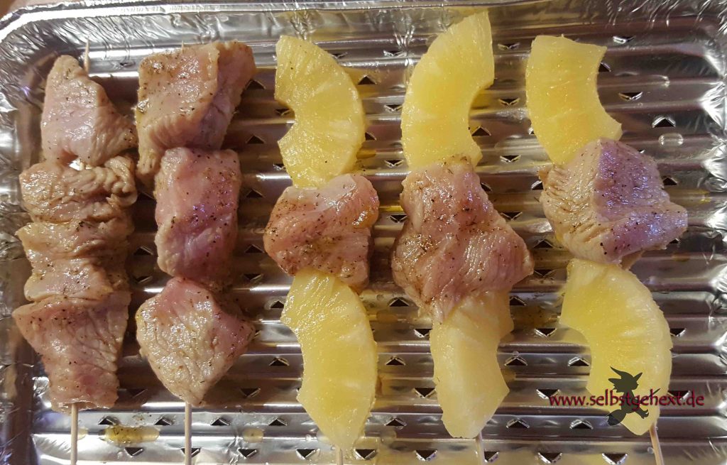 dazu gibt es grünen Salat und noch mehr Spieße: