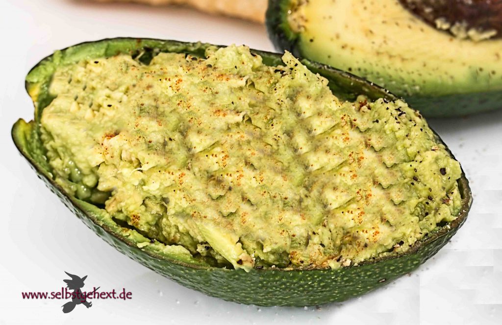 Ein leicht zu machender Avocado-Dip aus 2 sehr reifen Avocados, 1 Tomate in Stücken, 0,5 frisch gepressten Zitronen, etwas Salz und roten Chilis nach Belieben.