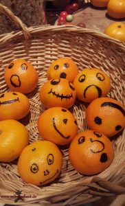 Süß und sauer: Mandarinen-Gesichter für kleine Halloweengäste