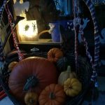 Zudem einen Kürbiskorb am Gespensterfenster, ein Kater in Halloween-Stimmung und jede Menge Bastelarbeit.