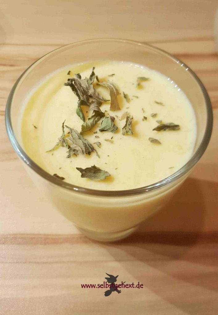 Kein Muss: Als Deko habe ich getrocknete Minzblätter etwas zerrieben.