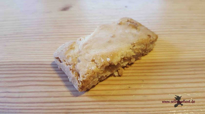 300 Gramm Mehl 1 TL Backpulver 80 Gramm Zucker 1 EL Vanilleextrakt 1 Prise Salz 1 Ei 200 Gramm kalte Butter etwa 6 EL Apfelgelee oder jeden anderen Gelee (z.B. Quitte- oder Rosen-) Alle Zutaten, mit Ausnahme des Gelees, vermengen. Teig halbieren und beide Teile jeweils auf etwa fünf Millimeter Dicke ausrollen. Gelee darauf verteilen, Teigplatten übereinanderlegen und leicht andrücken. Bissgroße Riegel ausstechen und für eine halbe Stunde kalt stellen. Ofen auf 200 Grad (Ober-/Unterhitze) vorheizen. Backblech mit Backpapier auslegen und Teigstücke darauf platzieren. Etwa acht Minuten goldgelb backen. Merken Merken Merkenweiterlesen
