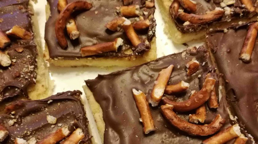 Oh, wäre es doch immer so einfach. Rührteig Eurer Wahl für ein großes Blech ansetzen und backen. Eine Ladung Kuvertüre schmelzen und mit ordentlich gesalzener Erdnussbutter vermengen. Als Glasur über den fertigen, noch warmen Kuchen gießen. 3 Hände voll dieser Mini-Salzbrezeln grob zerbröseln und in die noch weiche Schoki verteilen. So einfach, so lecker und es macht ordentlich was her.weiterlesen