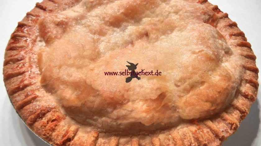 100 Gramm Rohrohrzucker mit 1 EL Mehl, 0,5 TL Salz, 1 TL Zimt, 0,5 TL Muskatnuss, 1 Msp gemahlene Nelke, 1 Msp frisch gemahlener Pfeffer in 3 Eiern verquirlen. Daumengroßes Stück Ingwer schälen, 2 Tassen Kürbis pürieren und alles mit 1 Becher Creme fraiche vermengen. Ob Mürbeteig oder Blätterteig, ob gekauft oder selbstgehext – diese Pastete schmeckt fantastisch. Einfach in eine gefettete Pie- oder Tarteform den Teig ausrollen und mit der Kürbismasse füllen. Teigdeckel drauf, und in den auf 170 Grad vorgeheizten Backofen mittig schieben. Darüber in den ersten 30 Minuten Alufolie legen, sonst verbrennt der Teig recht bald. Danach Alufolie herunter nehmen und nochmalsweiterlesen