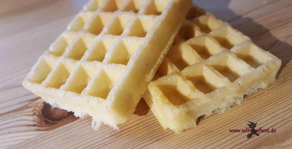 Das Waffeleisen mit etwas Öl einpinseln. Teig im Waffeleisen ausbacken.